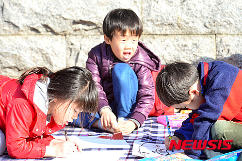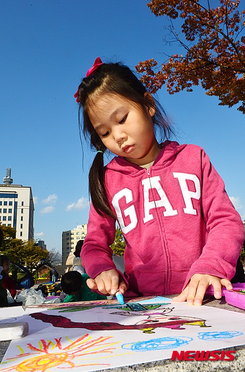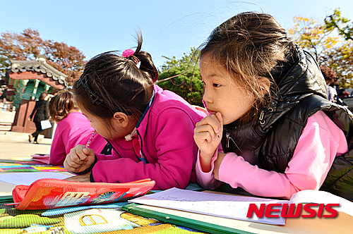 南山韓屋村(ソウル市中区)で28日午後、子ども作文・写生大会が行われ、秋空の下、多くの子どもたちが参加した。