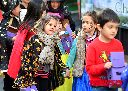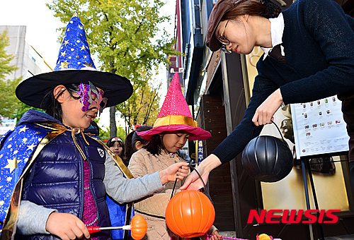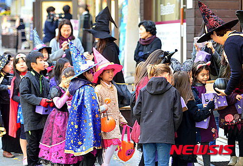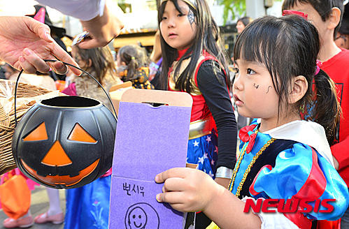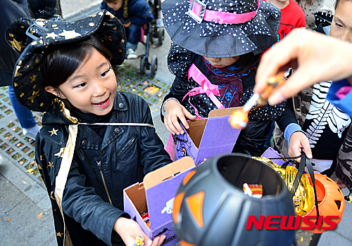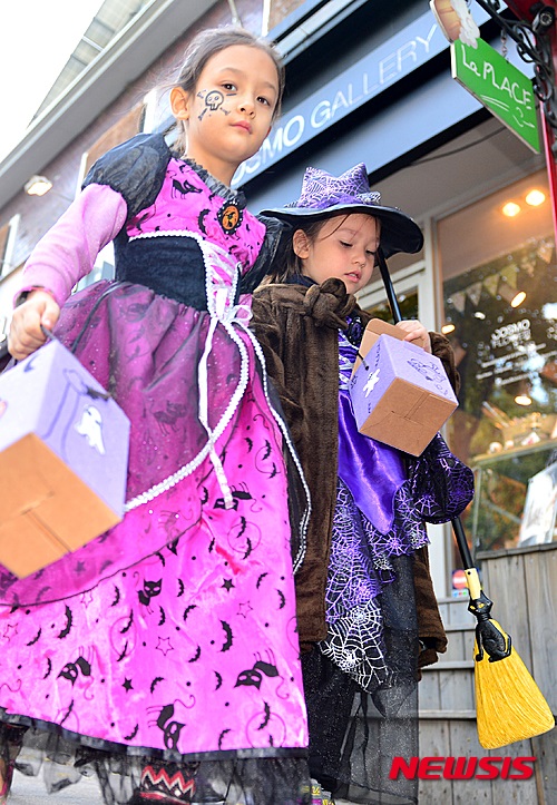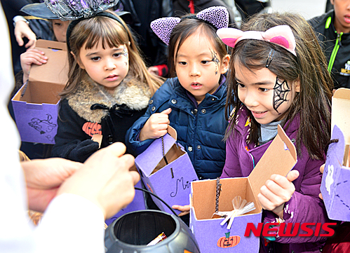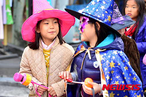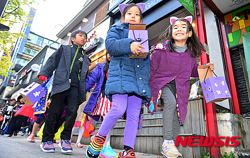 ハロウィンを翌日に控えた30日午後、フランス人が多く居住するソレマウル(ソウル市瑞草区盤浦洞)では、仮装した子どもたちがお菓子をもらって歩いた。