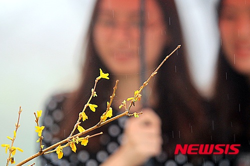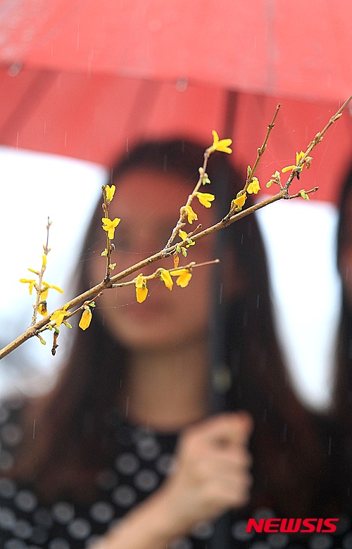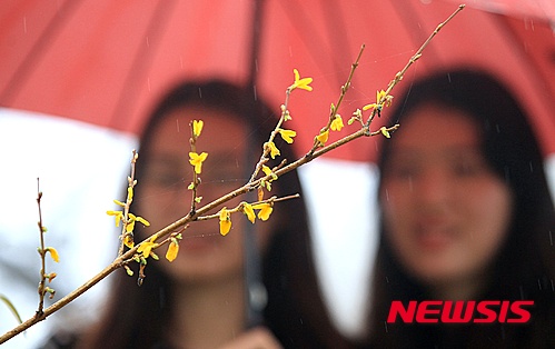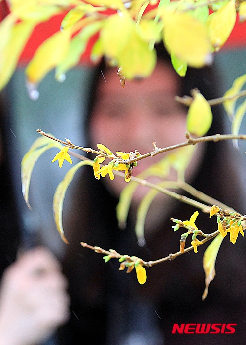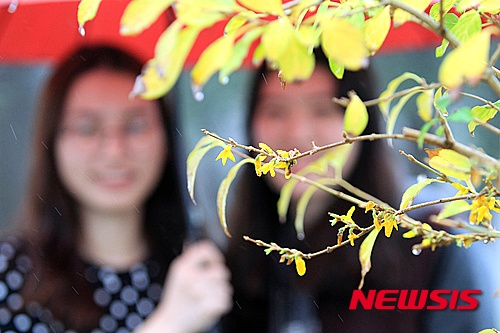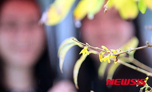 晩秋真っ只中の18日午後、済州大学では春の花レンギョウが咲き、学生たちの目を引いていた。