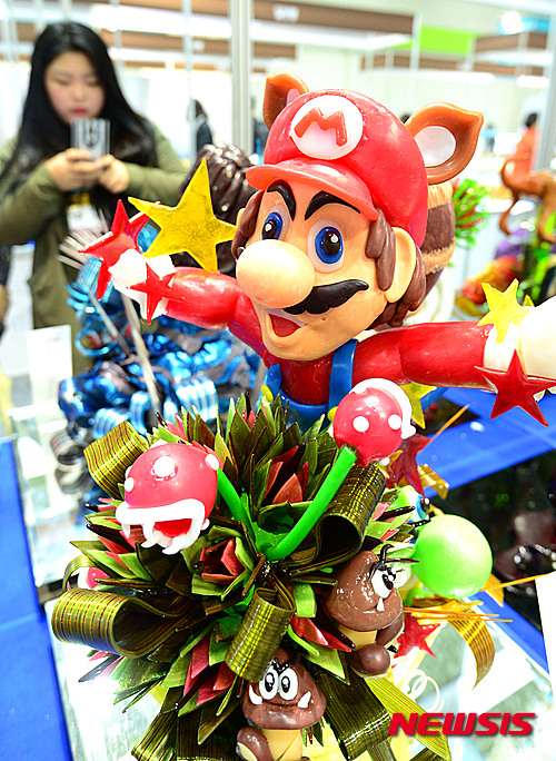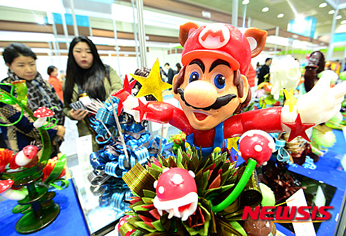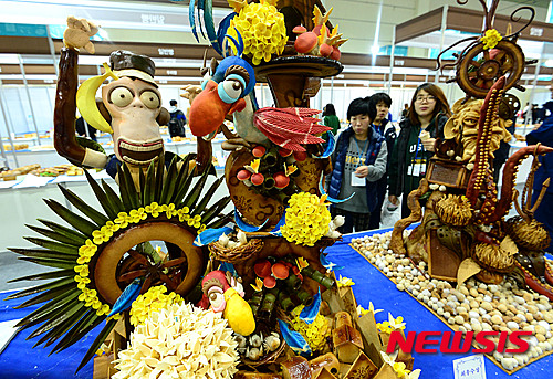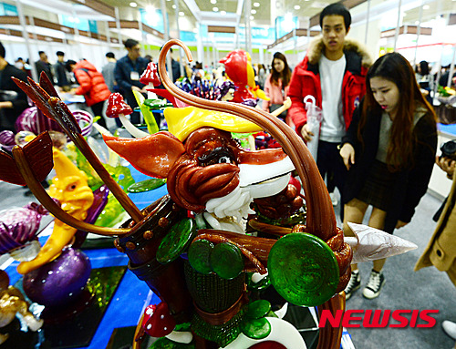 ソウル市江南区のCOEXで18日午後、「ソウル国際食品産業展2015」国際パン菓子フェスティバルが開催され、訪れた市民たちがあめ細工などを見て回った。