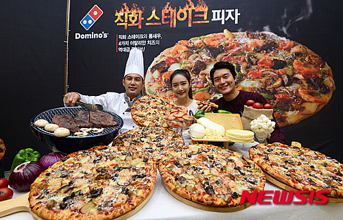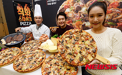 ドミノピザが19日、ソウル市鍾路区の世宗文化会館イェインホールで「直火ステーキピザ」を発表した。