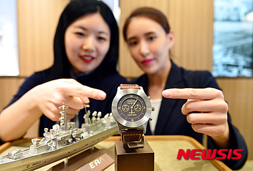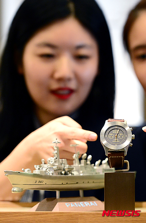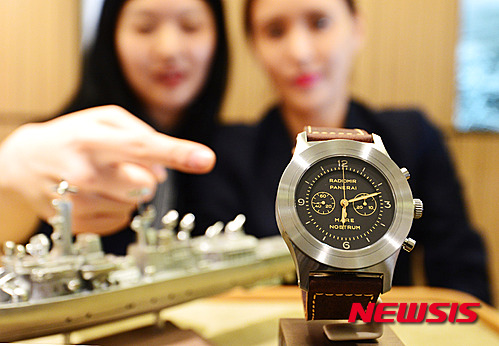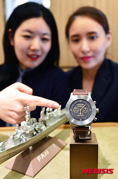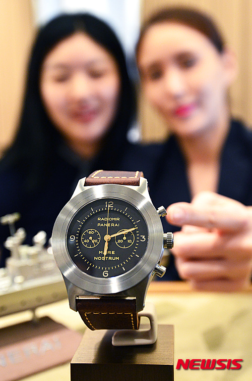 ソウル市江南区の現代デパート貿易センター店で30日午前、モデルたちが、イタリアの時計ブランド「PANERAI(パネライ)」の「Mare Nostrum Titanio」を披露した。