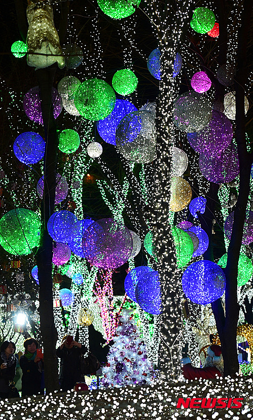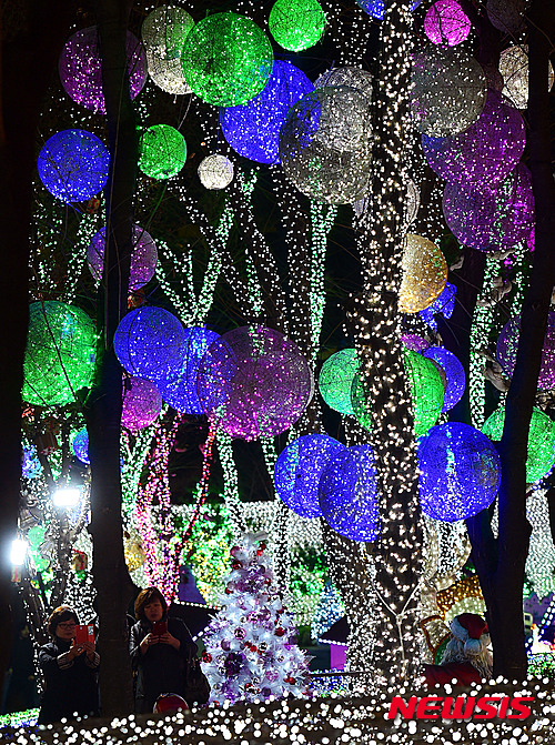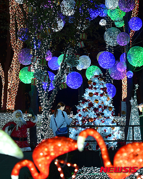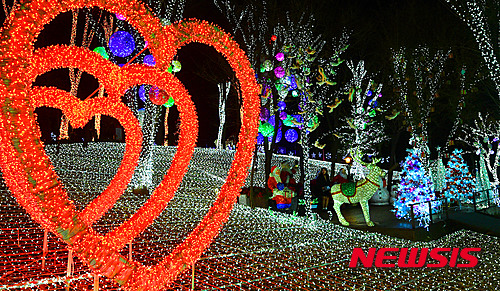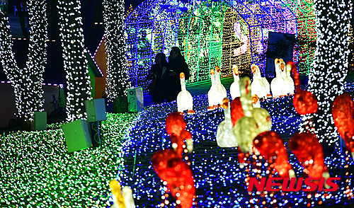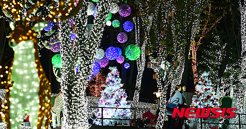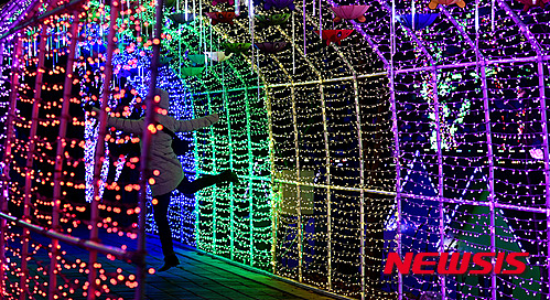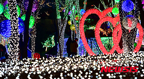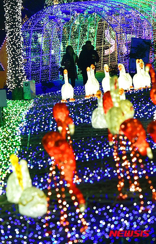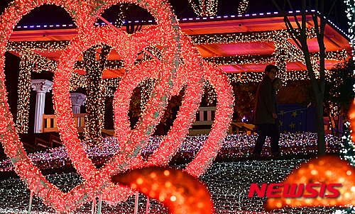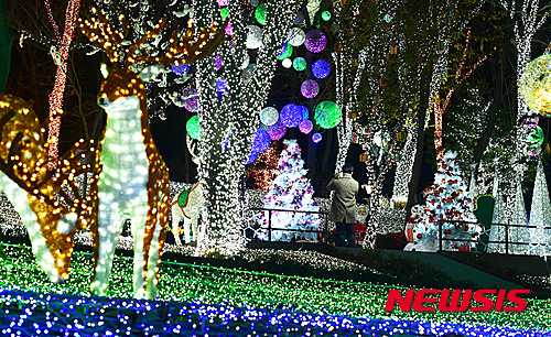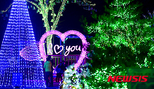 京畿道安山市の星光村フォトランドで1日、市民たちが華やかなイルミネーションを眺めながら楽しいひとときを過ごした。
