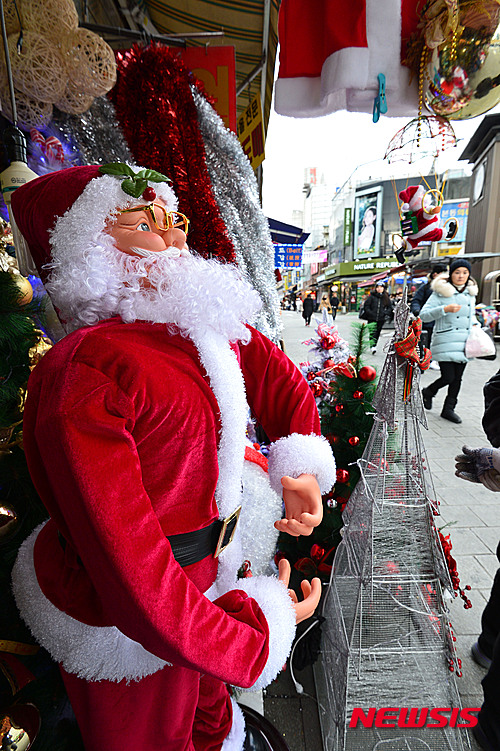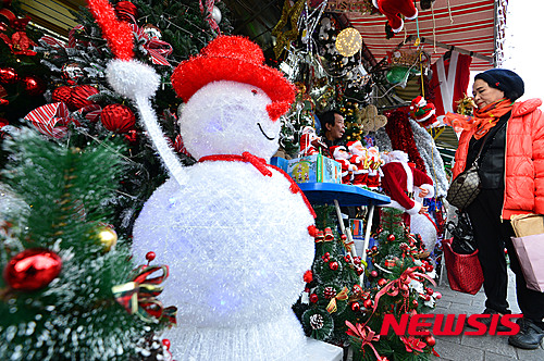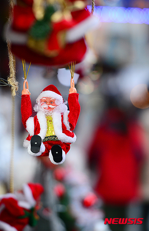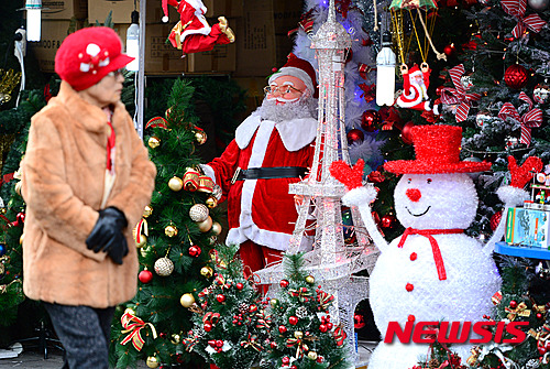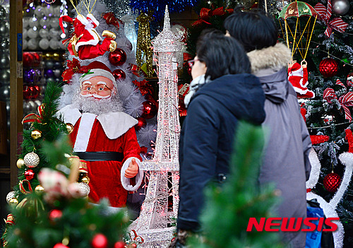 クリスマスを控えた4日午後、南大門市場(ソウル市中区)では、クリスマス・グッズを扱う専門店を訪れた市民たちがさまざまなグッズを見ていた。