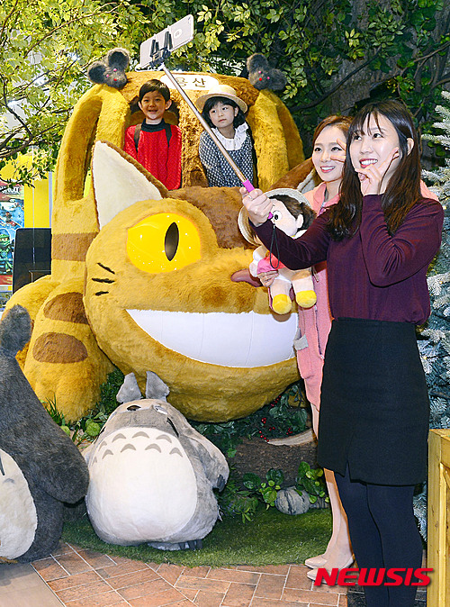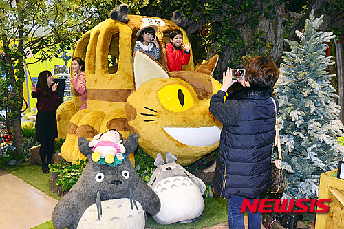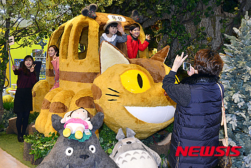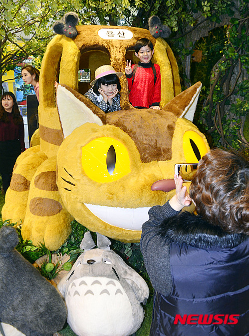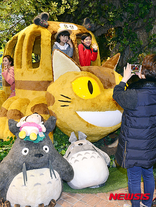 ソウル市竜山区のアイパーク百貨店のトイ&ホビー売り場で8日午前、人気アニメ「となりのトトロ」に登場するネコバスが再現された。