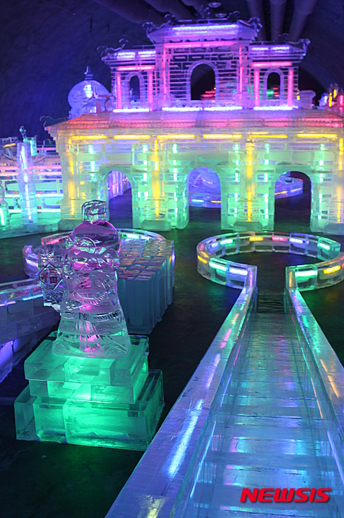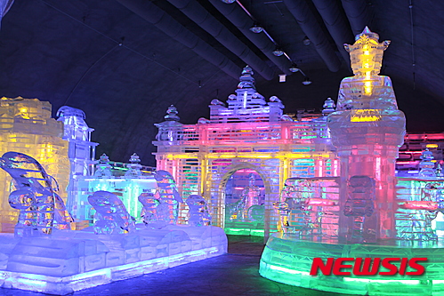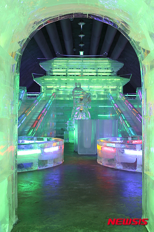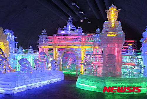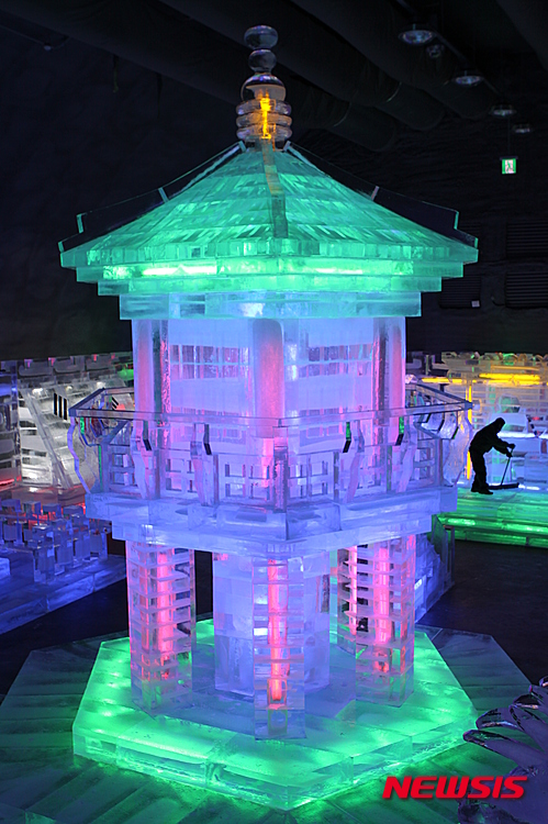 ヤマメ祭り開幕までおよそ1カ月となった8日、江原道華川郡にある韓国最大規模の室内氷の彫刻広場では、19日のオープンを前に仕上げの作業真っただ中だ。 なお、ヤマメ祭りは来年1月9日に開幕する。