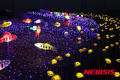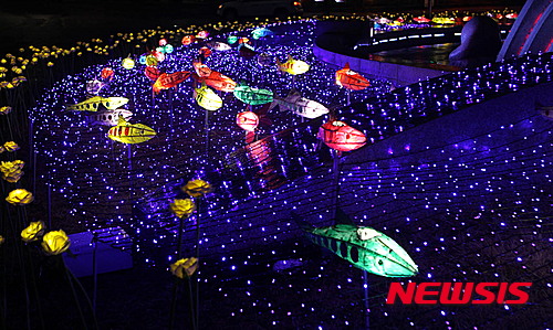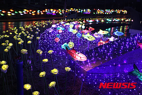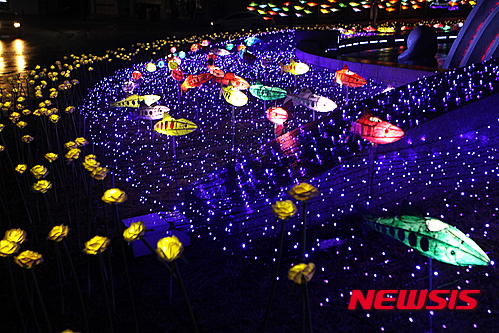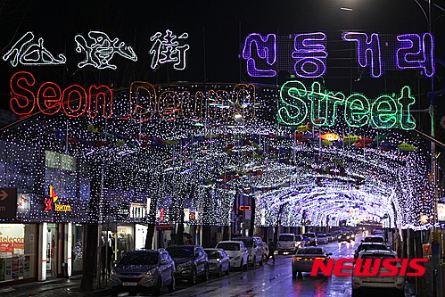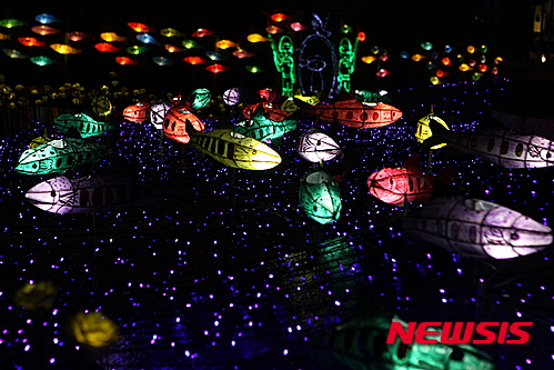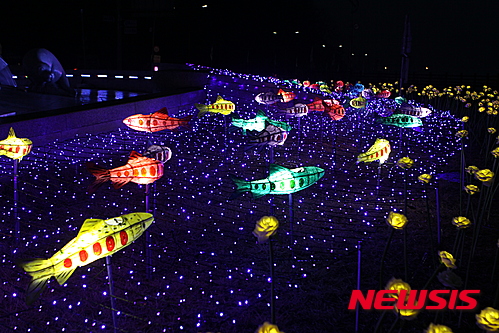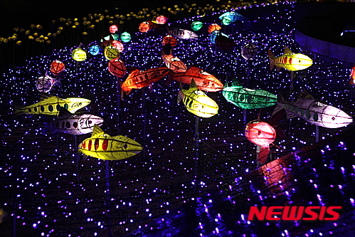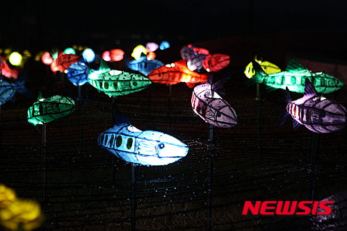 「ヤマメ祭り」の開幕を告げるちょうちん点灯式まであと五日となった14日夜、江原道華川郡華川邑の市街地では、ヤマメをかたどったちょうちんの飾り付けが行われた。