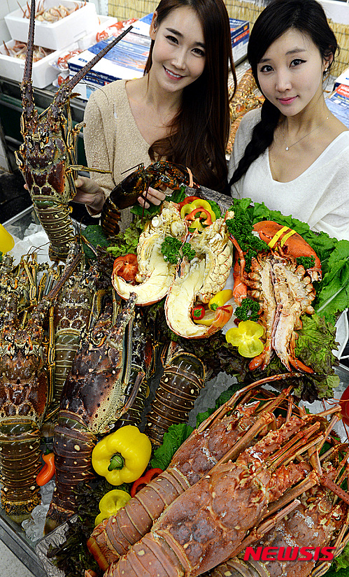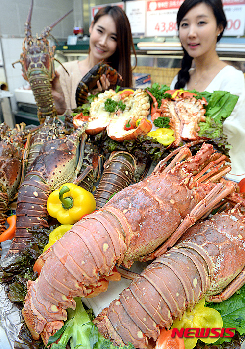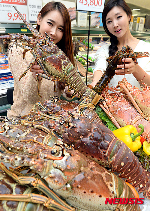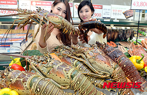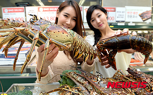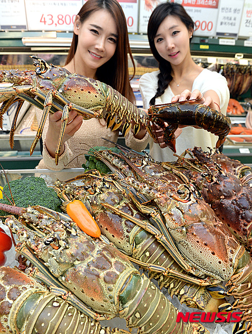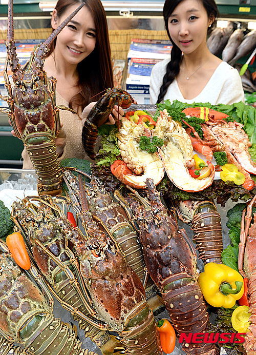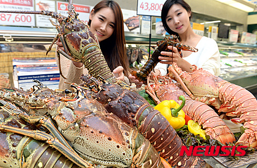 22日午前、大型スーパーのEマート竜山店(ソウル市竜山区の)水産売場で、「甲殻類の天国」カリブ海でとれたスパイニー・ロブスターの販促イベントが行われた