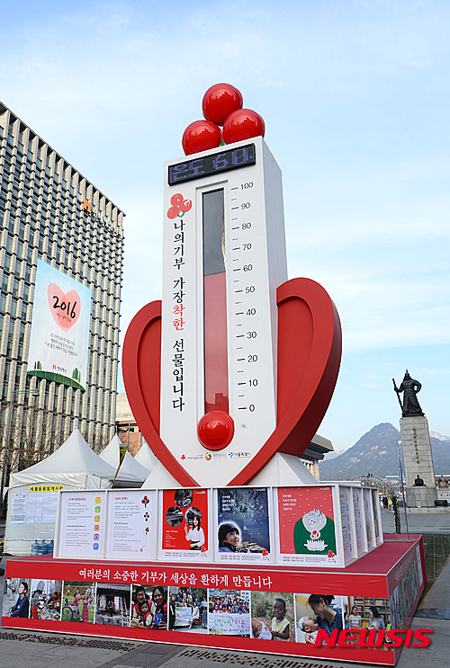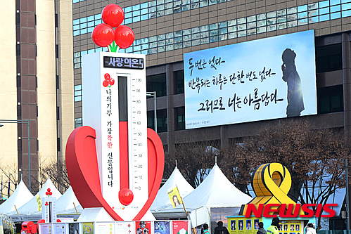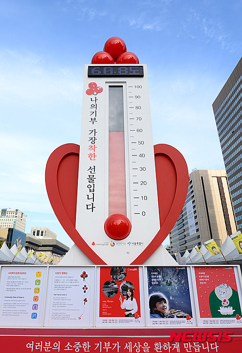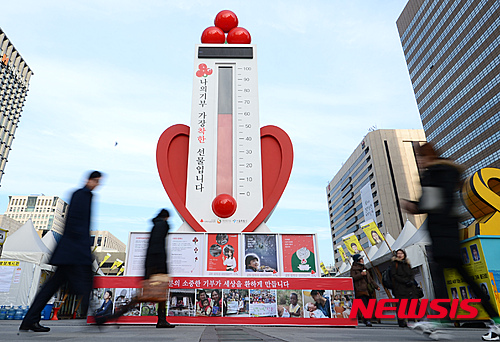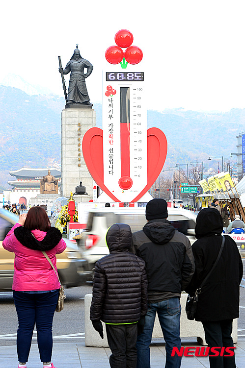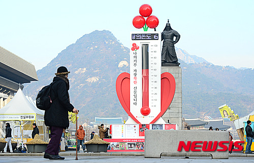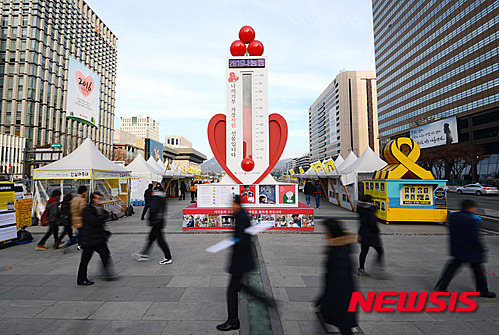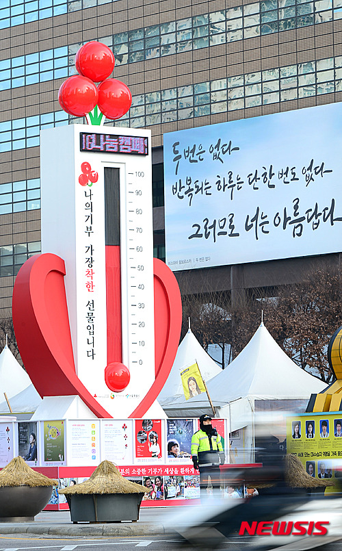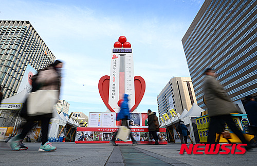 新年まであと3日となった29日午前、ソウル市鍾路の光化門広場に設置された「愛の温度塔」の温度が60.8度に達した。
