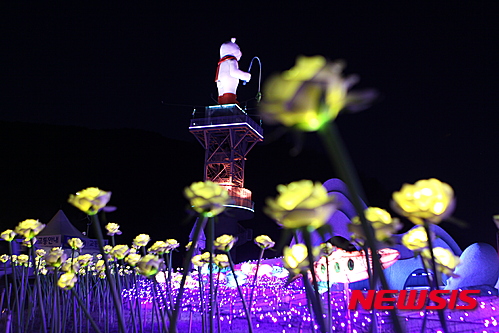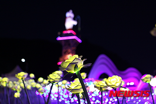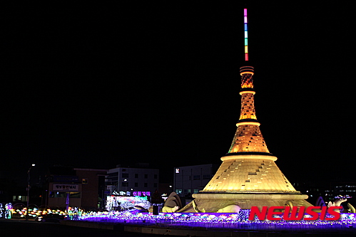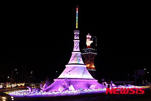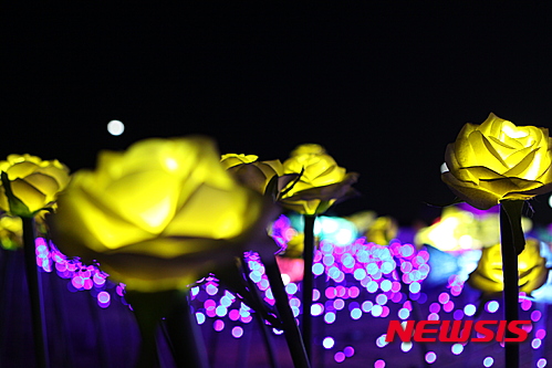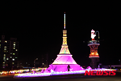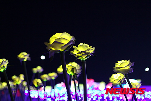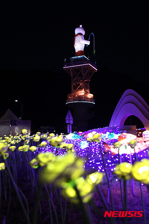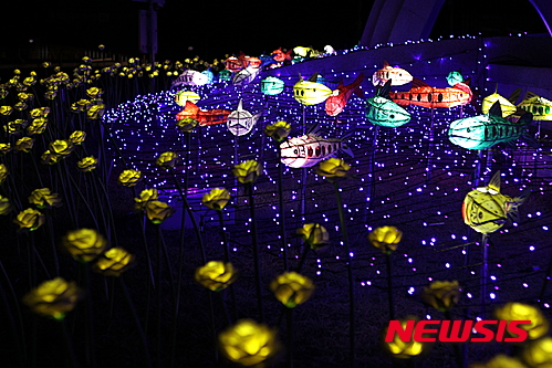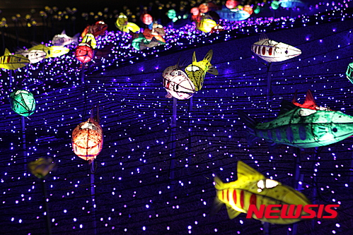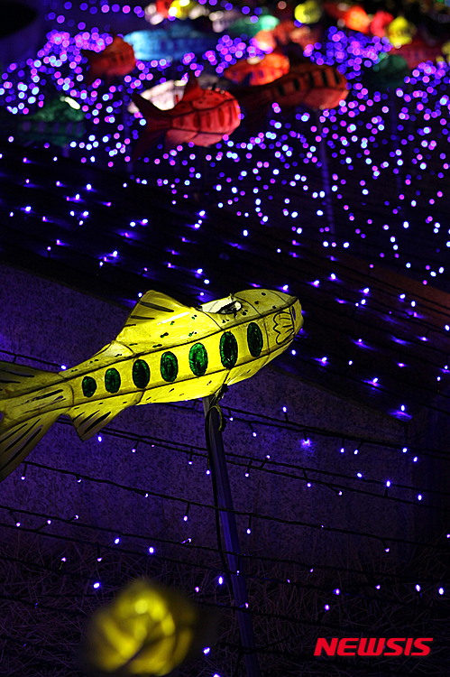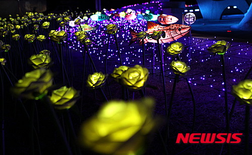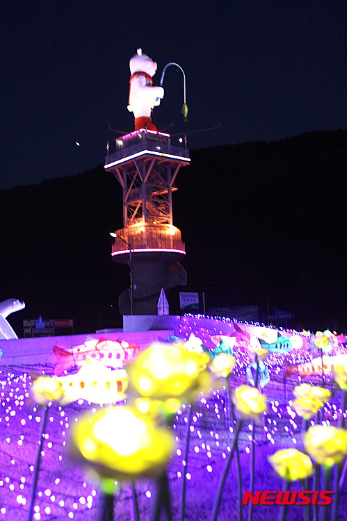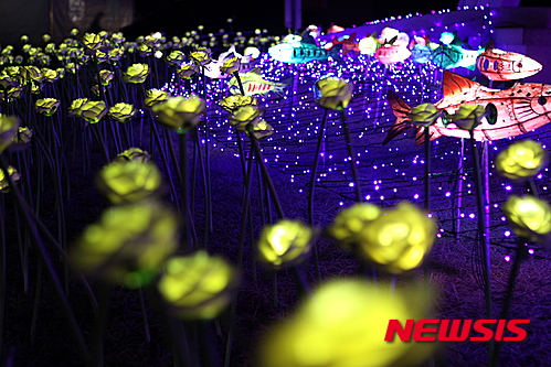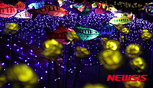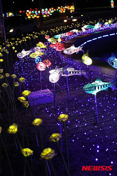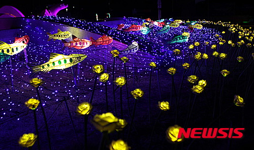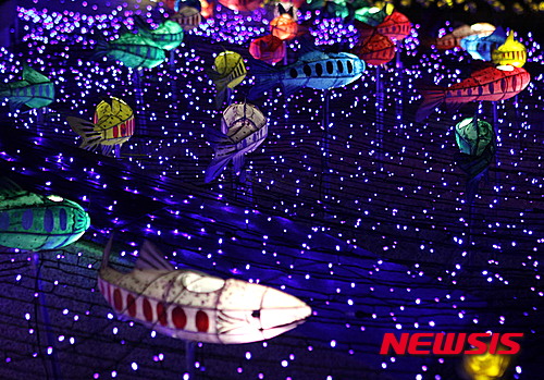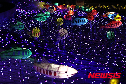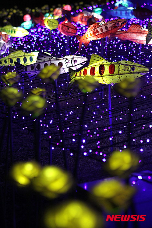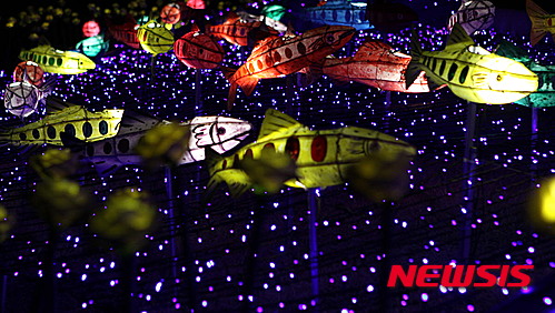 13日、江原道の華川ヤマメ祭りが連日盛況だ。写真は、灯のともったヤマメの形のちょうちんや、ライトアップされたオブジェ。美しい夜景を織りなしている。