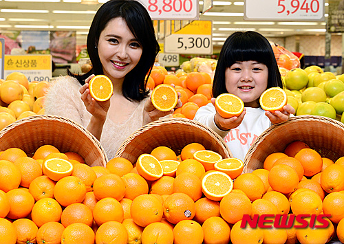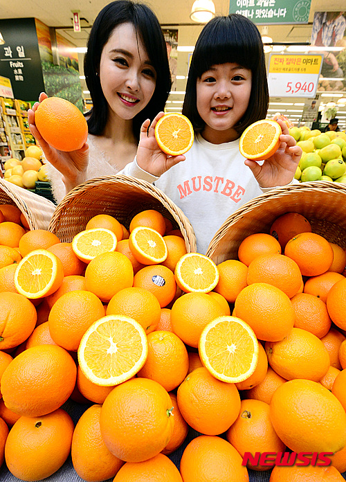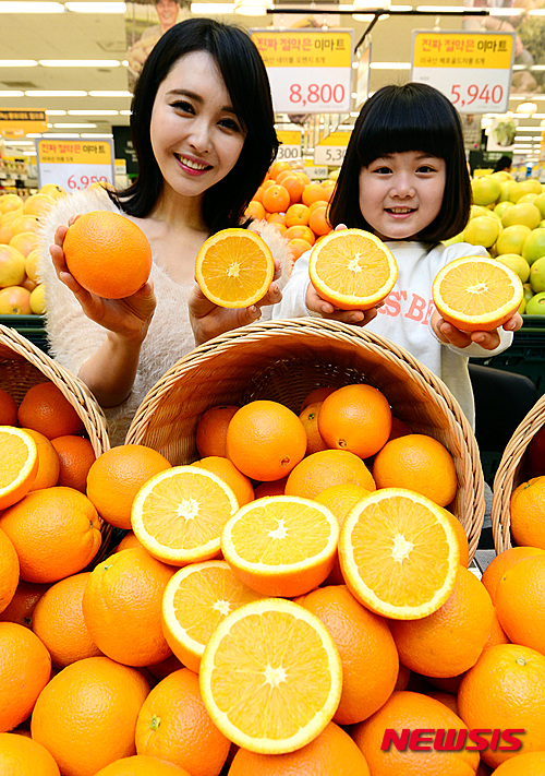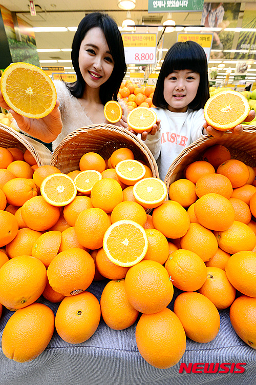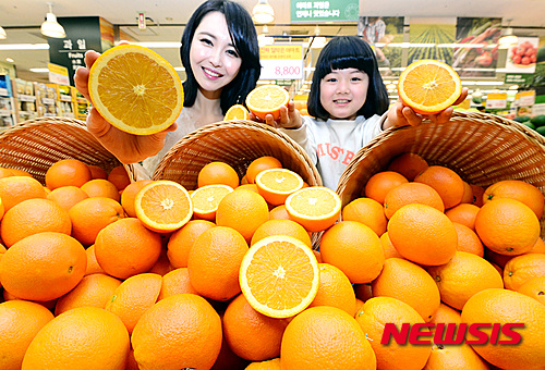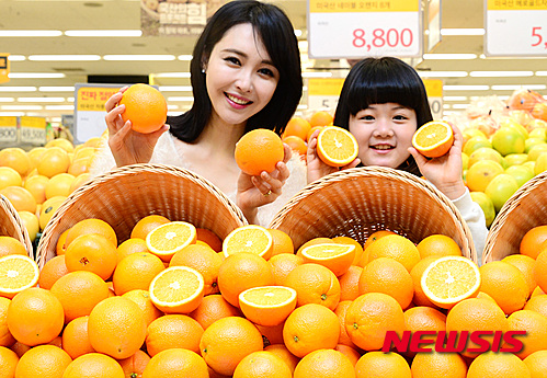 17日午前、ソウル市内の大型スーパー「Eマート」竜山店で、米カリフォルニア産オレンジのPRが行われた。