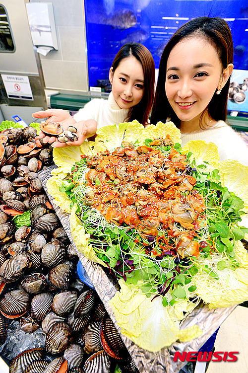 21日午前、Eマート竜山店(ソウル市竜山区)で鎮海湾産ハイガイの販促イベントが行われた。