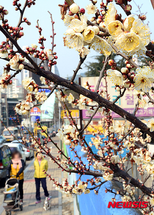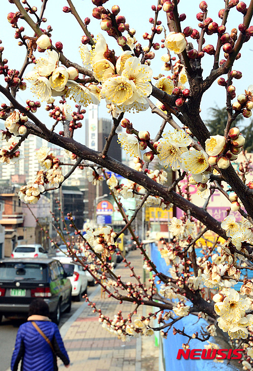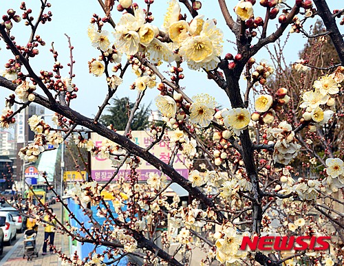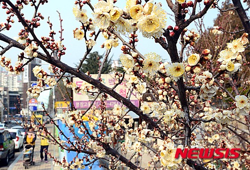 立春まであと四日となった31日、釜山市東莱区の古物店の庭で、春の訪れを知らせる梅が満開になった。