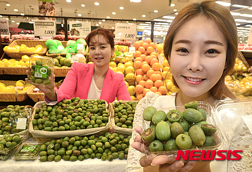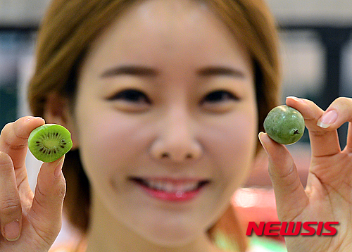 7日午前、ソウル市中区の大型スーパー「ロッテマート」ソウル駅店果物コーナーでは、一口サイズの「キウイベリー」PRイベントが行われた。