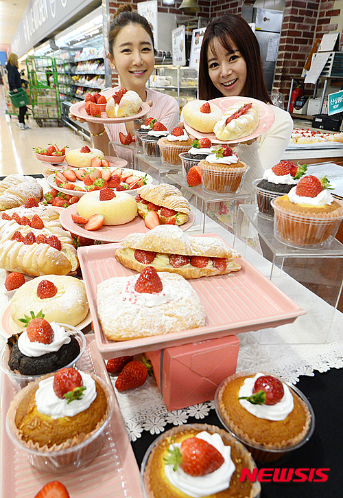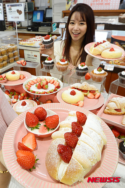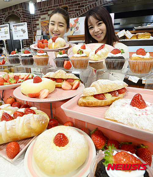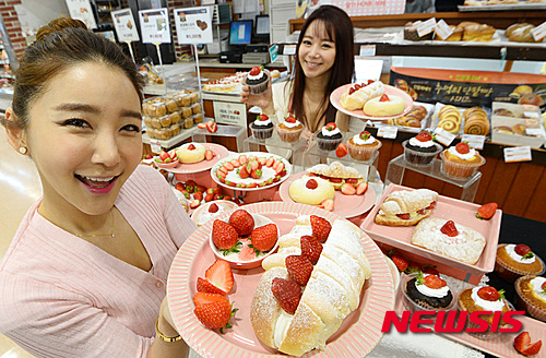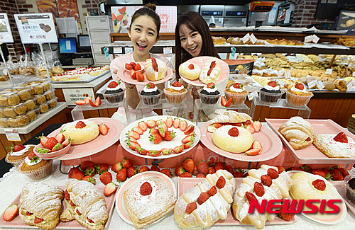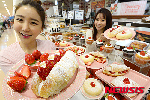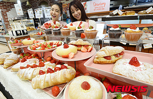 ロッテマート・ソウル駅店(ソウル市中区)のベーカリー「Bonespe」で8日、甘いイチゴを用いたパン6種類の販促イベントが開かれた。