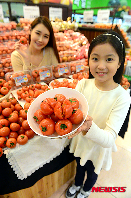 14日午前、ロッテマートソウル駅店(ソウル市中区)でカンパリトマトの販促キャンペーンが開催された。ロッテマートでは今月23日まで1袋(700グラム)6,900ウォン(660円)で販売する。