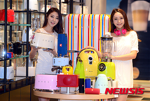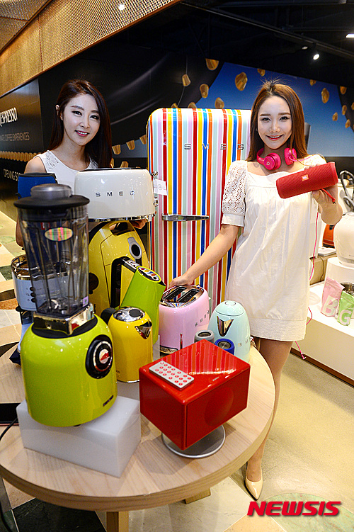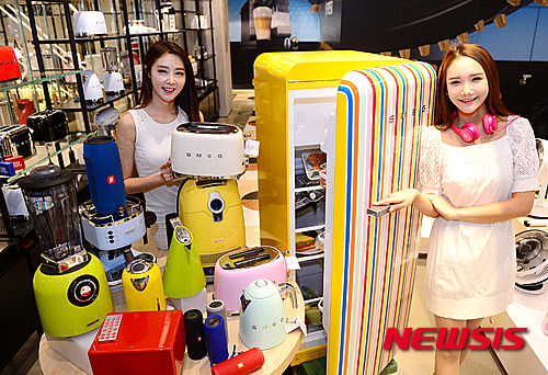 新世界デパート江南店(ソウル市瑞草区盤浦洞)の家電売場で14日午前、冷蔵庫・トースターなど、春の色彩を帯びたさまざまな家電製品をPRするイベントが開かれた。