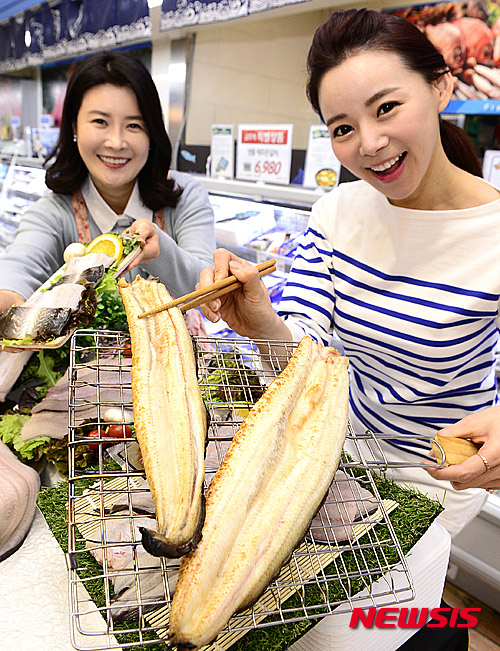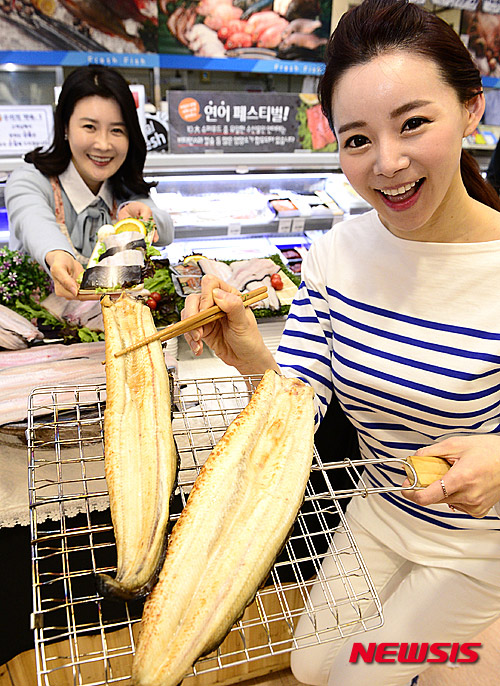 16日午前、ロッテマートソウル駅店(ソウル市中区)で韓国産ウナギの販促キャンペーンが行われた。