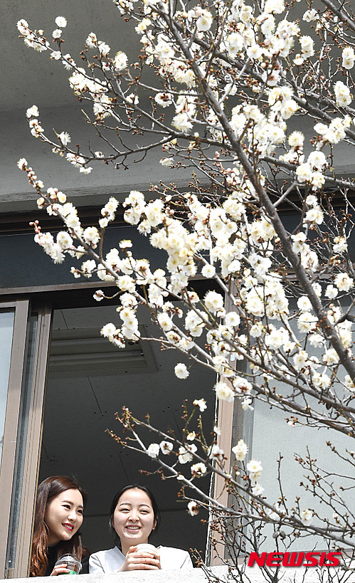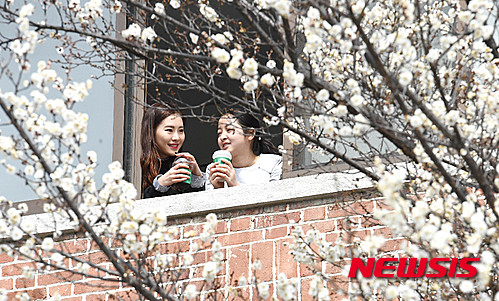 17日午後、韓南大学(大田市大徳区)キャンパスでは梅の花が開花し、学生たちの目を楽しませていた。