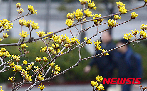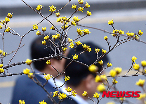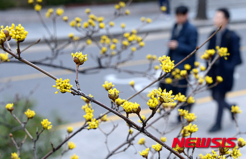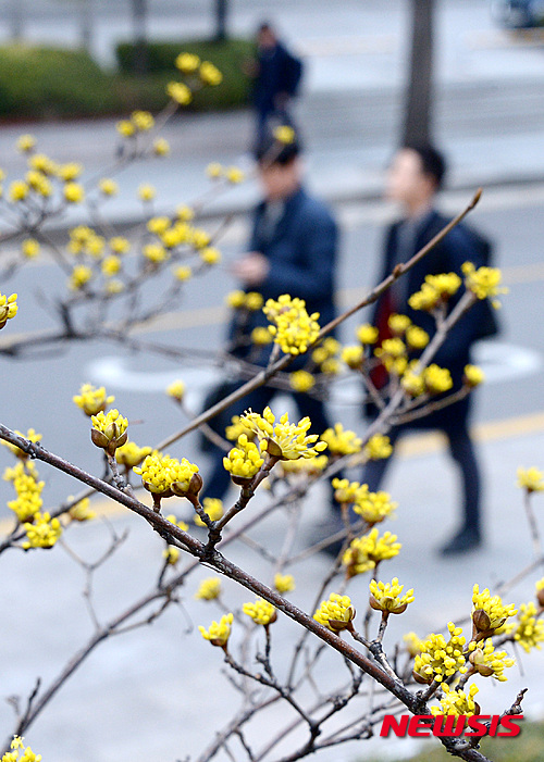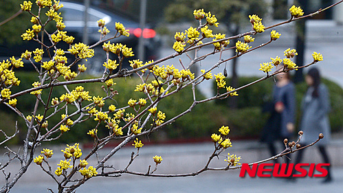 一年の間で昼と夜の長さが同じになる「春分」まであと三日となった17日午後、光化門駅(ソウル市鍾路区)近くの道にはサンシュユの花が咲いていた。
