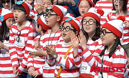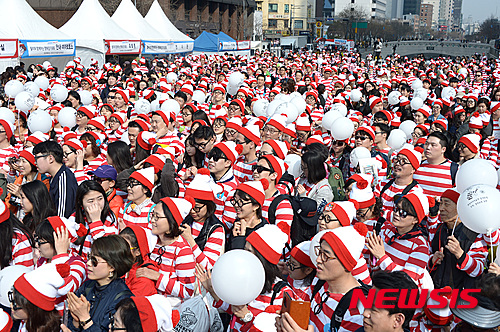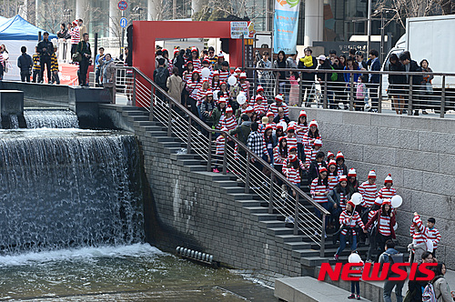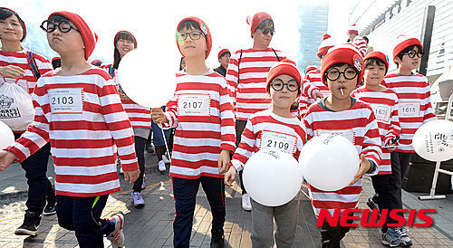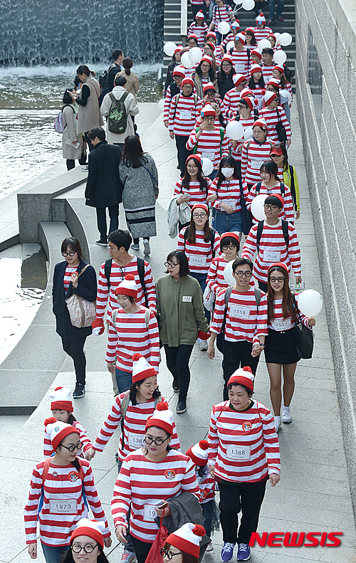 ソウル市鍾路区清渓川広場で19日午後、聴覚障害の子どもを支援する「ウォーリーと一緒の幸せウォーキング大会」が開かれ、参加した市民が清渓川の川縁を歩いた。