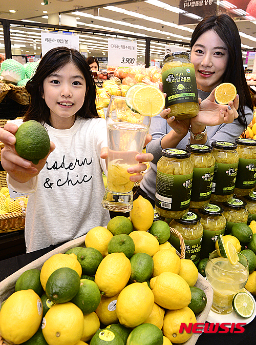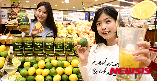 23日午前、ロッテマートソウル駅店(ソウル市中区)で、炭酸水で手軽にエード作りが楽しめる各種ジャムが店頭に並んだ。
