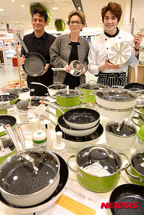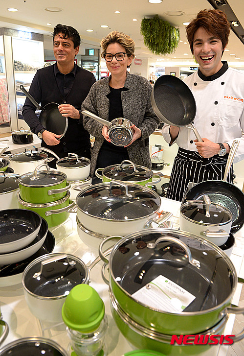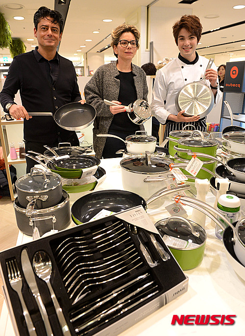 ソウル市中区のロッテデパート本店で24日、フランスの厨房用品ブランド「AUBECQ」の韓国ローンチングイベントが行われ、AUBECQのアモリ最高デザイン責任者、デザイナーのステファニーさん、タレントでフランス国籍のロビン・デイアナ(写真左から)が登場した。