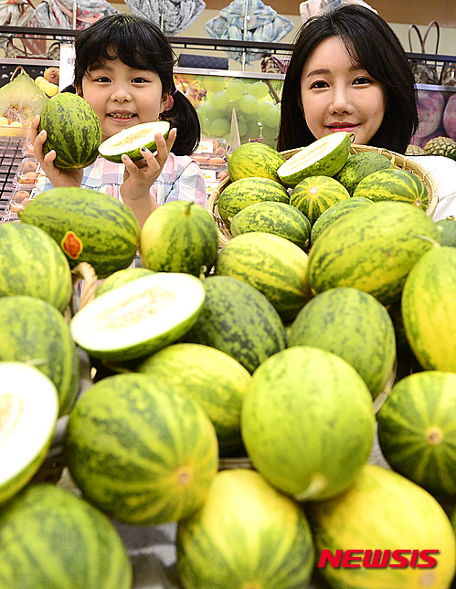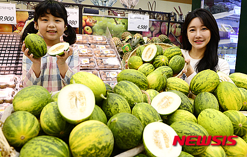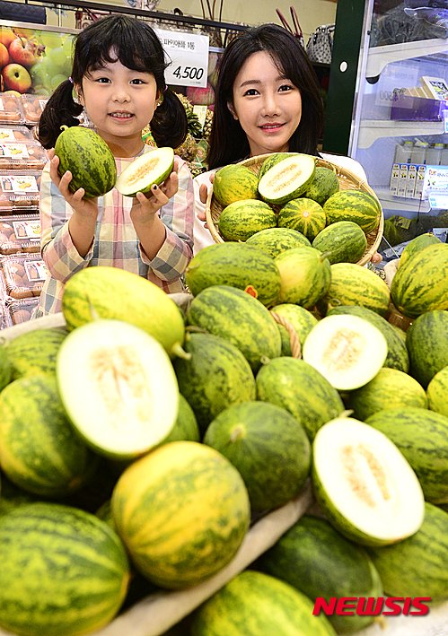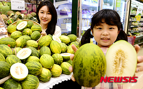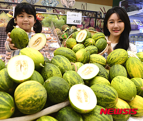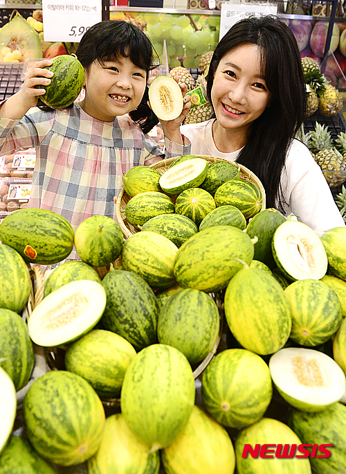 31日午前、ロッテマートソウル駅店に今年初出荷された高霊産のパパイヤメロンが店頭に並んだ。