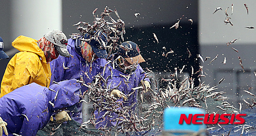 6日午後、釜山市機張郡の大辺港で、春のイワシ漁が行われた。 大辺港では22日から24日まで「第20回機張イワシ祭り」が開催される。