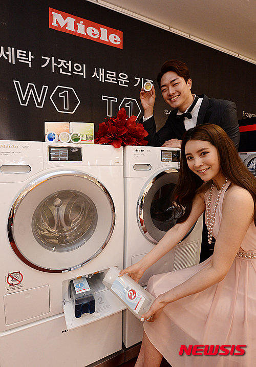 26日午前、ロッテデパート本店(ソウル市中区)家電売り場で、独ミーレ社のハニカムドラム洗濯機「W1」シリーズ、ハニカム乾燥機「T1」シリーズの発売記念イベントが開催された。