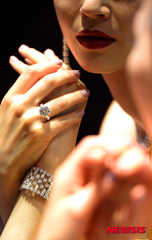 27日午前、新羅ホテル(ソウル市中区)で「ダイヤモンド・レガシー」展示会が開催され、グラフのラウンド・ダイヤモンド・ネックレス(112.33カラット)、ダイヤモンド・ウォッチ(43.61カラット)など、約120億ウォン(約11億6000万円)相当の商品が展示された。