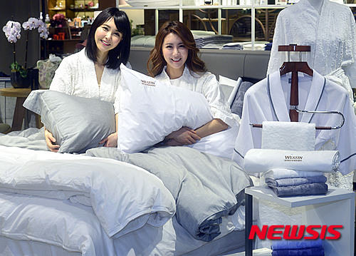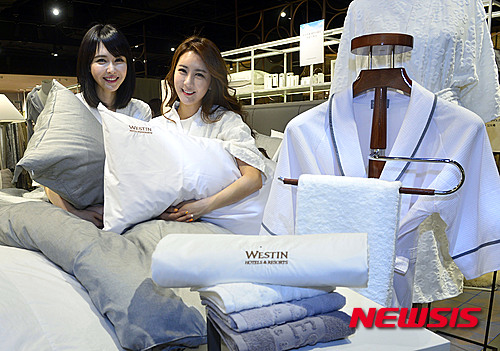 9日、新世界デパート江南店の寝具売り場に、ウェスティンホテルの客室に置かれている寝具類が店頭に並んだ。