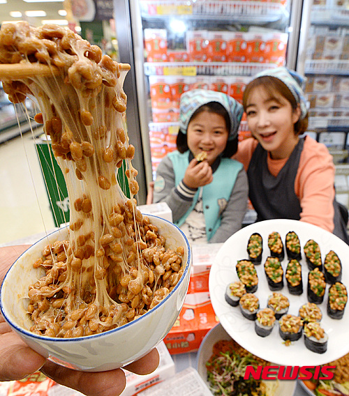 10日午前、おかめ納豆がEマート竜山駅店の食品売り場に並んだ。