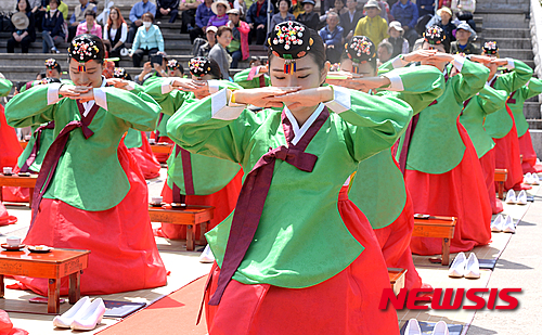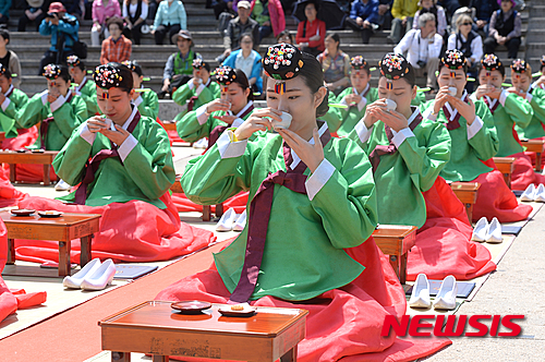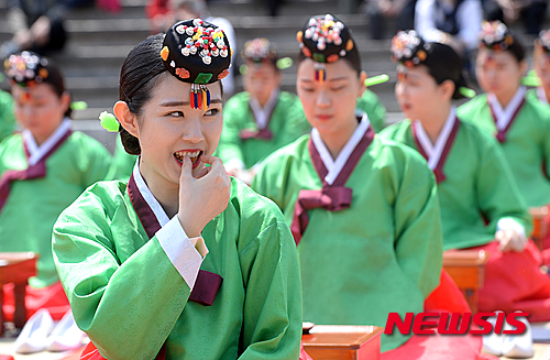 成人の日に当たる16日、南山韓屋村(ソウル市中区)で伝統成年礼再現イベントが行われた。