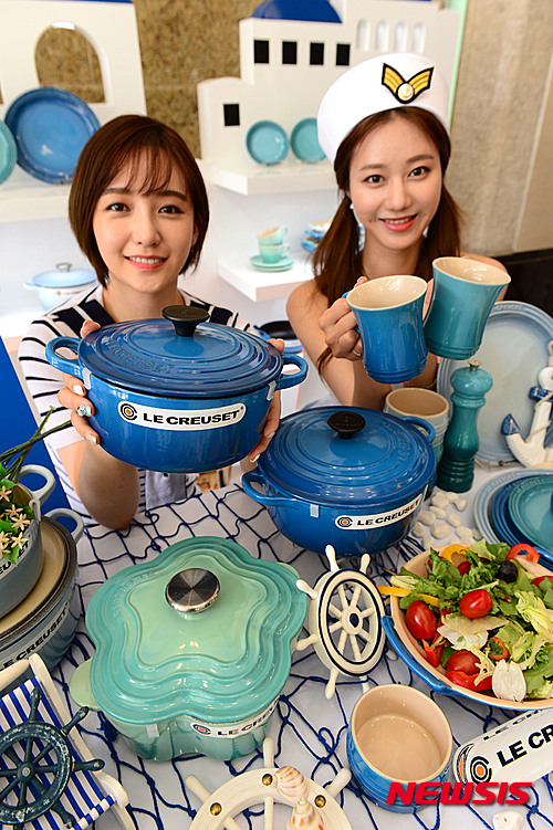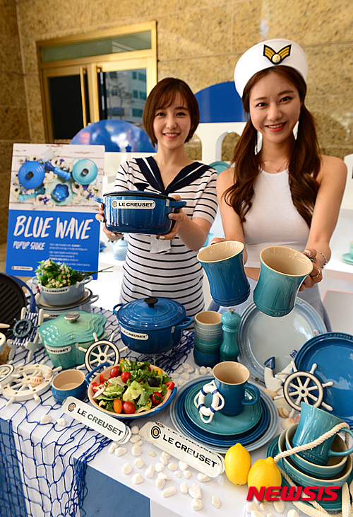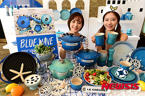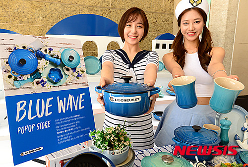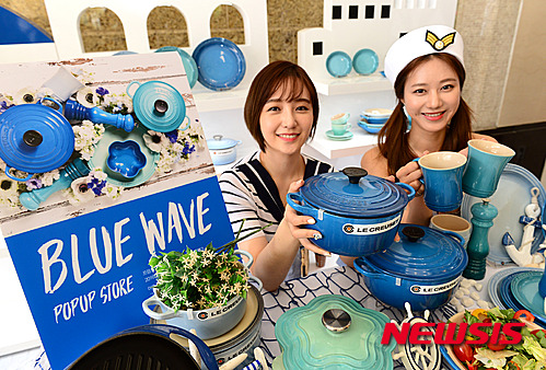 30日午前、韓国支社設立11周年を迎えたル・クルーゼがロッテデパート本店(ソウル市中区)に臨時店舗を開設し、新製品「BLUE WAVE」ラインを披露している。