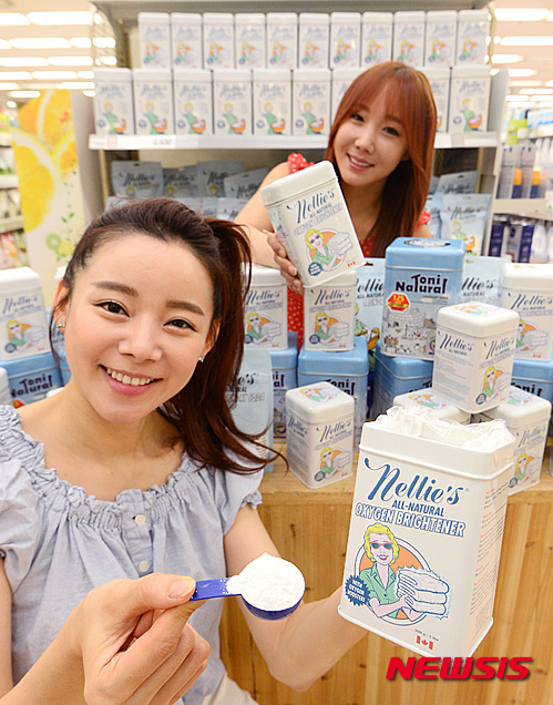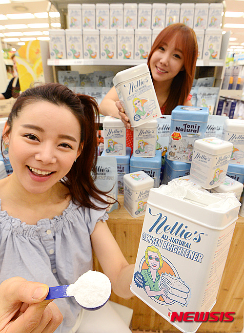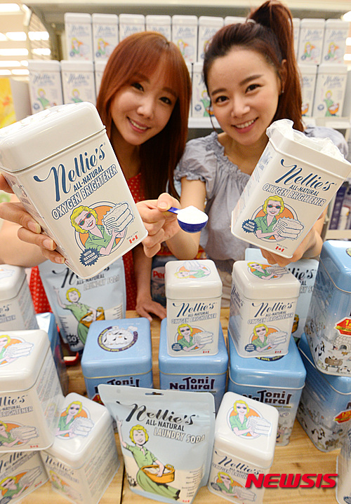 ソウル市中区のロッテマート・ソウル駅店で31日、合成界面活性剤など化学物質を使わない「親環境ソーダ洗剤」の販促イベントが行われた。