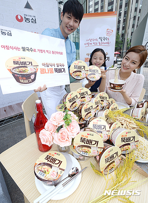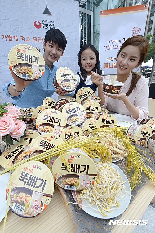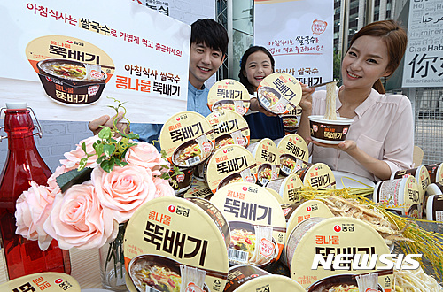 14日午前、清渓川広場で農心の新商品「豆もやしスープ」の販売促進キャンペーンが開催された。