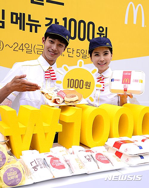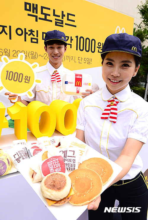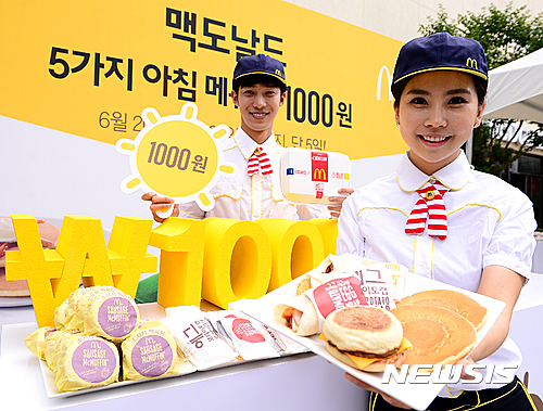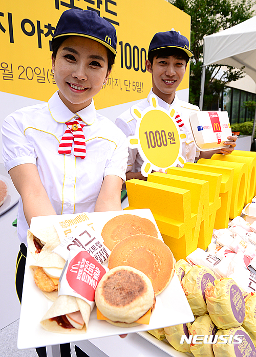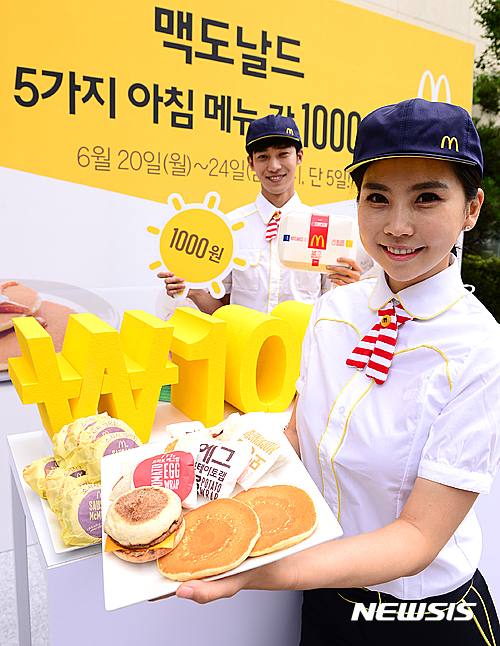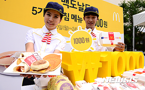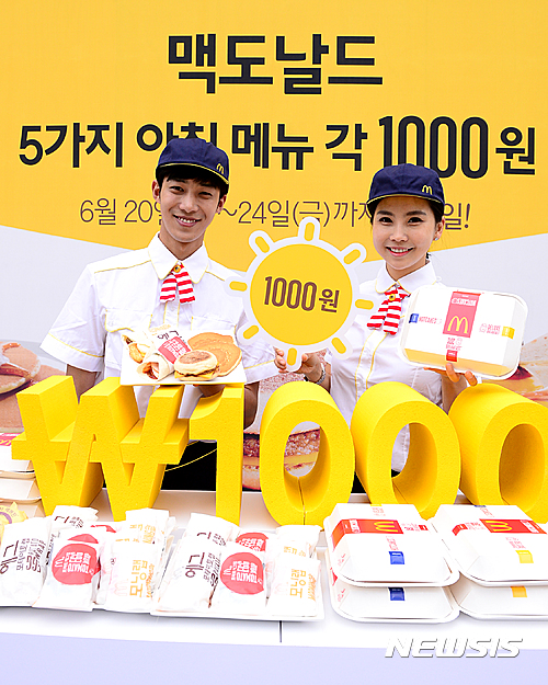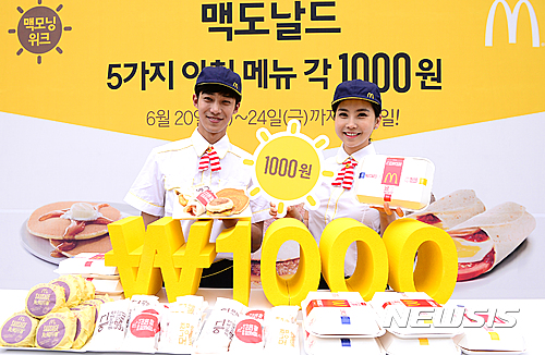 16日午前、マクドナルド光化門店で、1000ウォン(約90円)で買える朝マックメニュー5点が公開された。