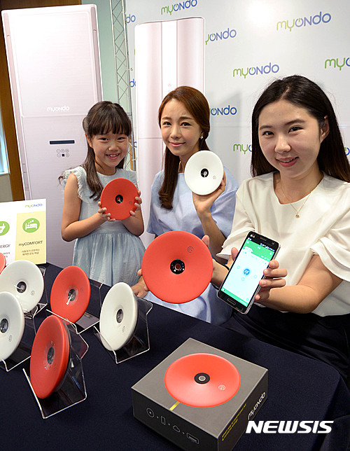 ビッグデータに依拠した知能型エンジンシステムの開発を手掛ける「AskStory」(クォン・ジフン代表)が29日午前、ソウル市鍾路のサマーセット・パレスで、人工知能エアコン調節器「マイ温度(myOndo)」の発売記念イベントを開催した。