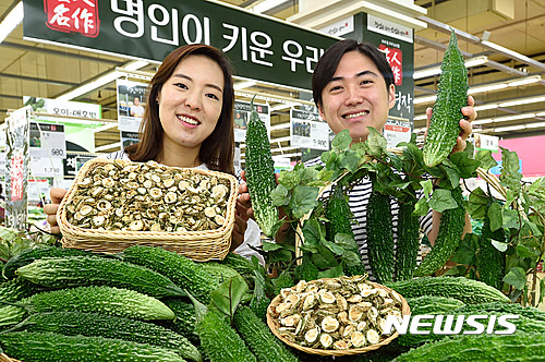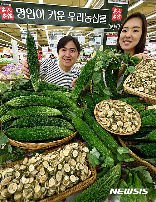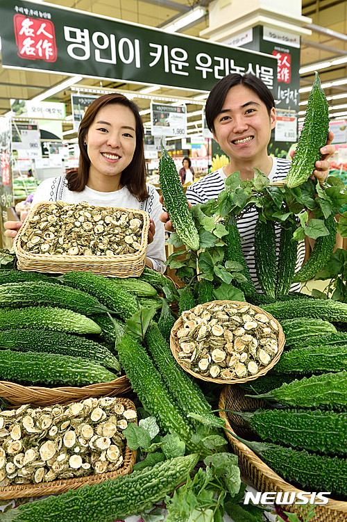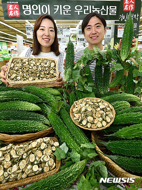 ソウル市瑞草区の農協ハナロマート良才店で29日、今年初出荷されたニガウリの販促イベントが行われた。