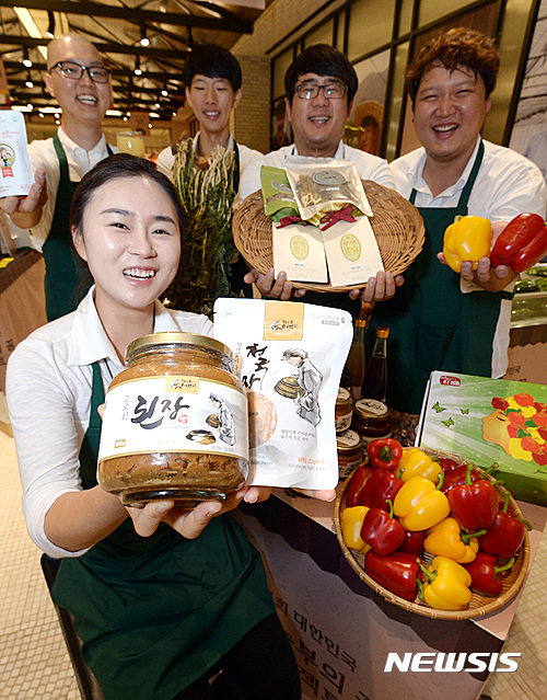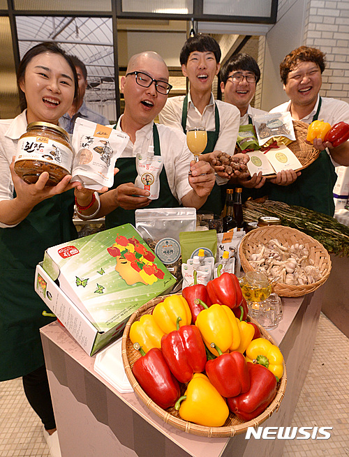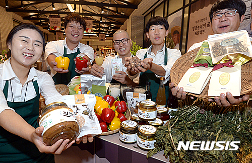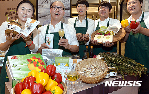 3日午前、ソウル市中区の新世界デパート本店食品売場で、農業を志す若者たちが独自のノウハウで生産した農産物や特産物をPRした。