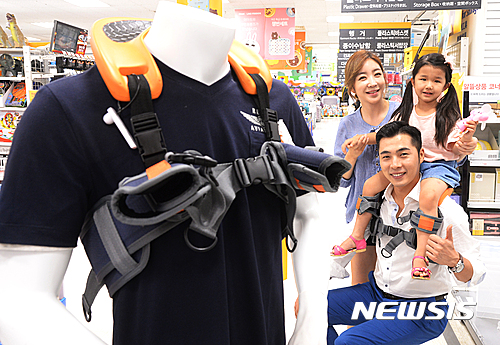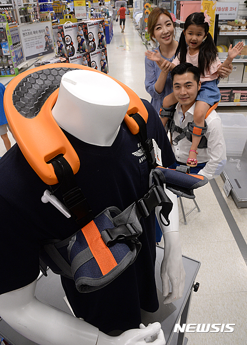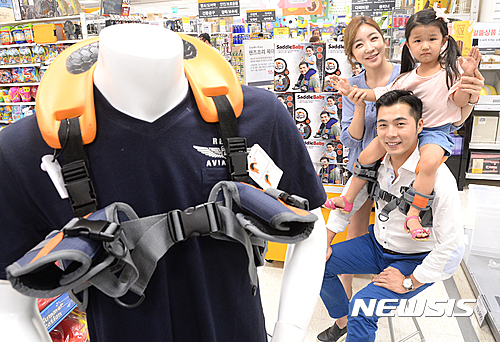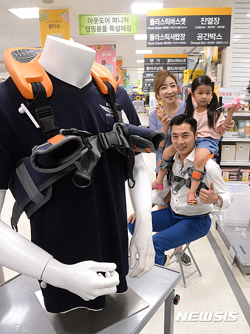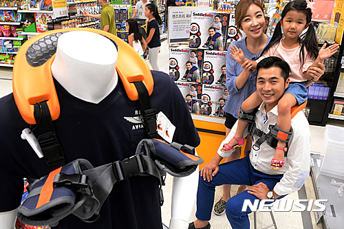 4日午前、Eマート竜山店で、ハンズフリー肩車「サドル・ベイビー」の販売促進キャンペーンが開催された。