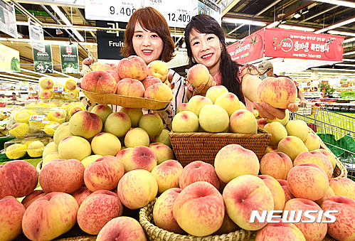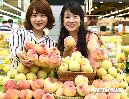 ソウル市瑞草区の農協ハナロマート良才店で、今年の露地モモ初物(白桃系列)の販促イベントが行われた。