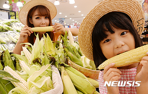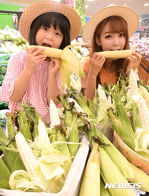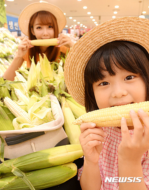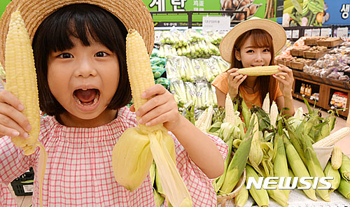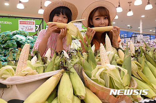 ソウル市中区のロッテマートソウル駅店で14日午前、夏場を代表するおやつ、忠清北道沃川産「大学トウモロコシ」の販促イベントが行われた。