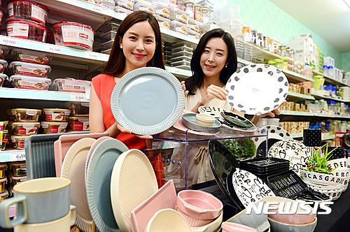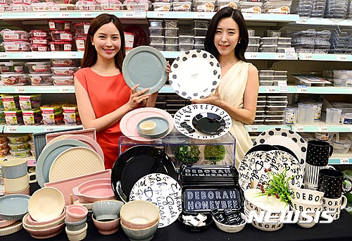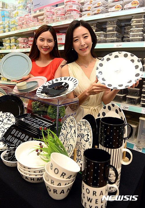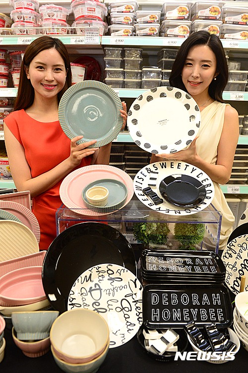 16日午前、ソウル市中区の大型スーパー「ロッテマート」ソウル駅店で、キッチン用品ブランド「デボラ」「エリー」の皿・マグカップ製品PRが行われた。