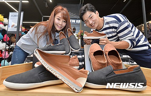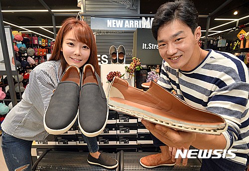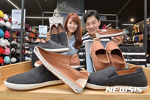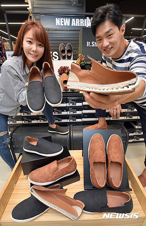 ソウルのロッテマート清凉里店で6日午前、男性向けおよび女性向けスリッポンの新製品販促イベントが開催された。
