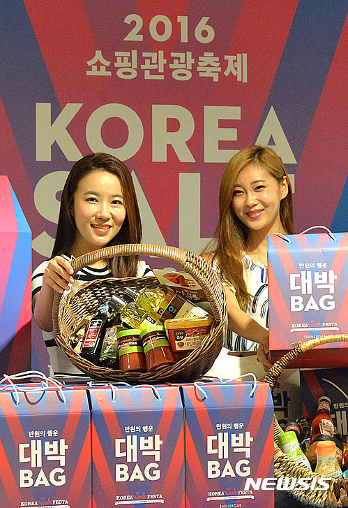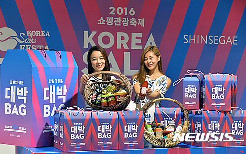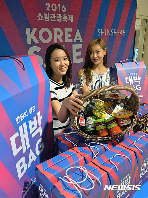 「コリア・セール・フェスタ」を明日に控えた28日午前、新世界デパート本店で3-4万ウォン相当の加工食品が入った福袋が1万ウォン(約900円)で販売されている。