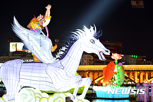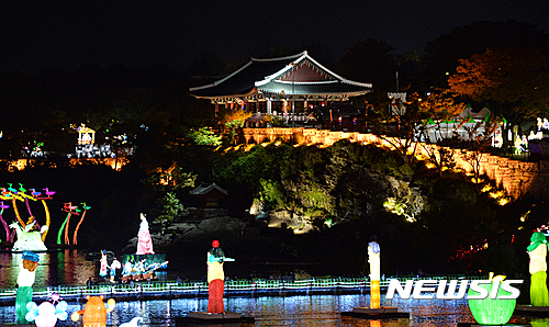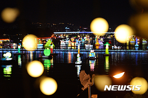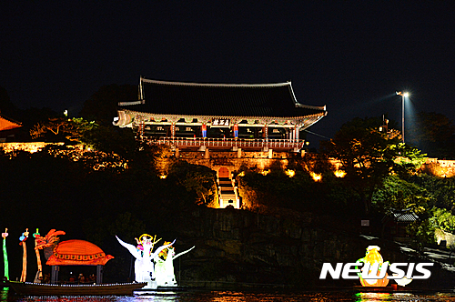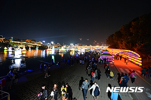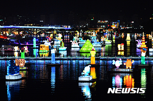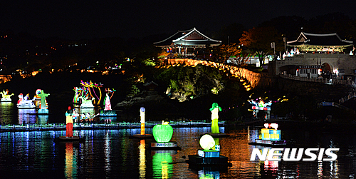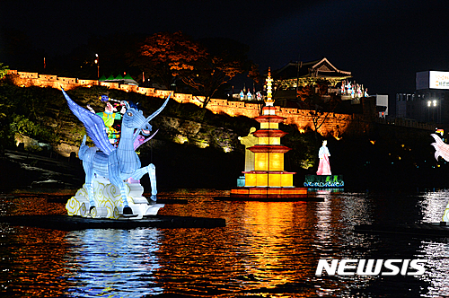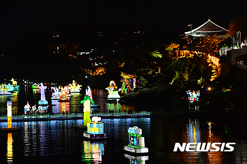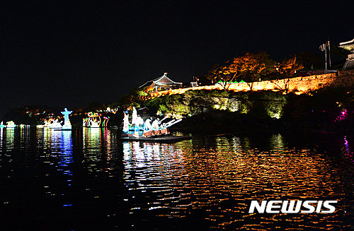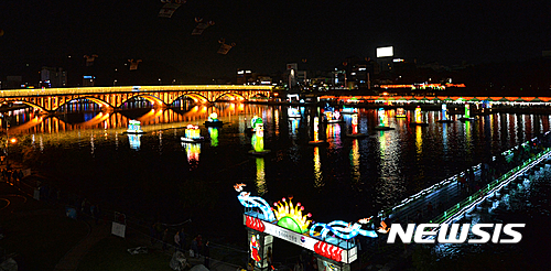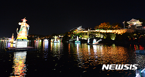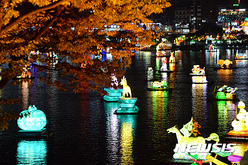 1日に始まった晋州南江灯籠流しは16日まで、晋州城や南江などで開催される。