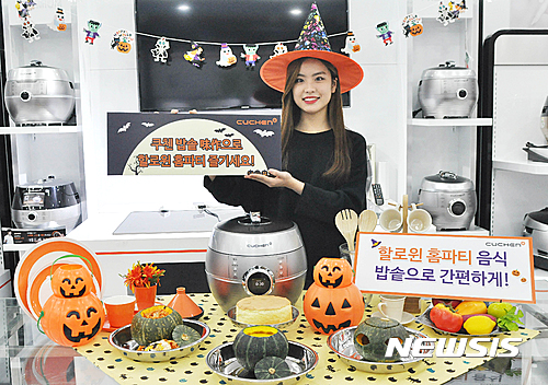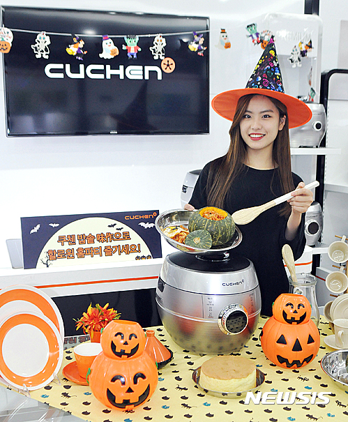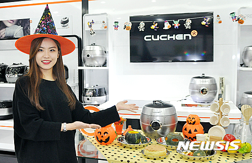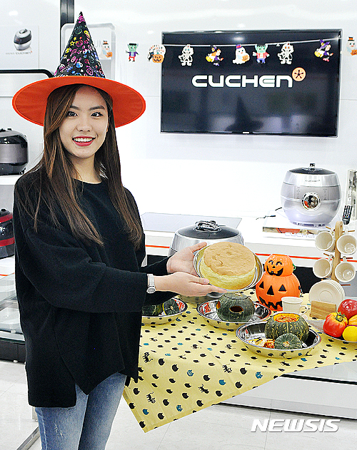 21日午前、生活家電専門メーカー「CUCHEN」本社(ソウル市江南区)で、同社製の炊飯器で作ったケーキ、かぼちゃ粥、かぼちゃ炒飯など、多様なホームパティ―向け料理を紹介している。