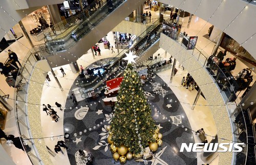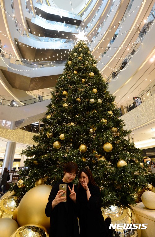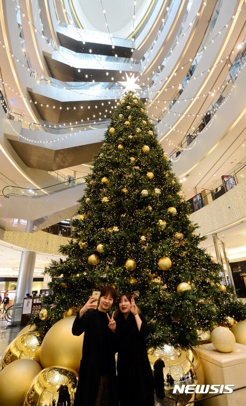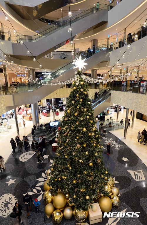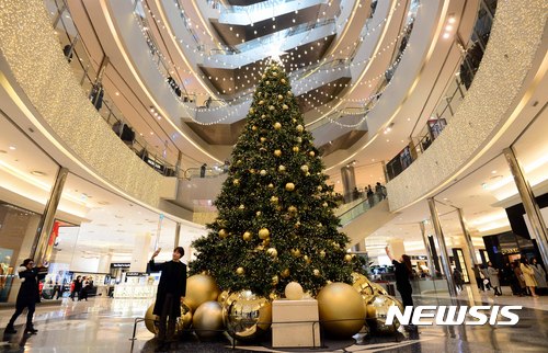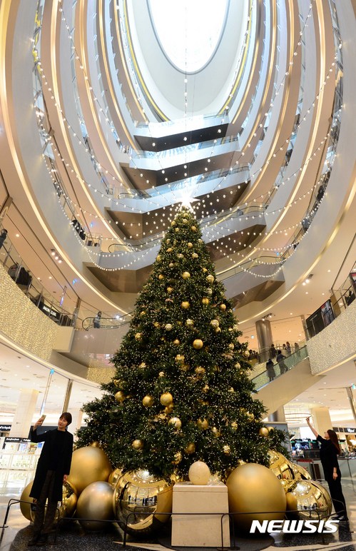 クリスマスまであと1カ月あまりとなった24日午後、釜山の新世界センタムシティ店1階に高さ11メートルの大型ツリーが設置され、デパートを訪れた人々の注目を集めた。